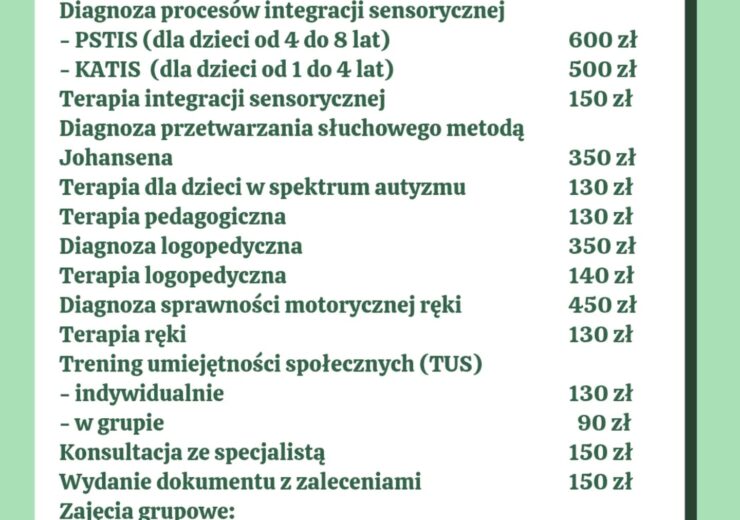 Nowy cennik zajęć, obowiązujący od 01.09.2025r. Klienci z ważną Kołbaskowska Karta Mieszkańca mają 10%…
